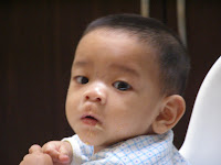 Rabu tu aku cuti...jaga dia kat umah..his motion getting worse..not only loose but watery..everytime dia poopoo..mesti bocor..cam bukak paip...kesian aku tgk dia...melepek jadinya..kali ni bukan sbb temp tinggi tapi sbb dah takde energy...aku buat cam doktor suh...cairkan susu dia...but still berterabur...I can afford to take leave for another day...ada meeting & reports nak kena submit...so ndak tak ndak...ngan hati yg berat aku still kena antar dia kat taska..2 ari dia terpaksa duk taska...petang jumaat tu aku bawak p pead clinic kat ampang point..ramai org recommend kat situ..masa kat clinic tu aku timbang dia...turun 700gm...nak menitis air mata aku...last timbang kat spital 6.7kg..skang dah tinggal 6kg..bukan senang nak naikkan berat dia..he's so skinny now..kalu pegang belakang dia, boleh rasa tulang belakang dia...muka pon dah cengkung...cuba compare dia skang ngan before this...